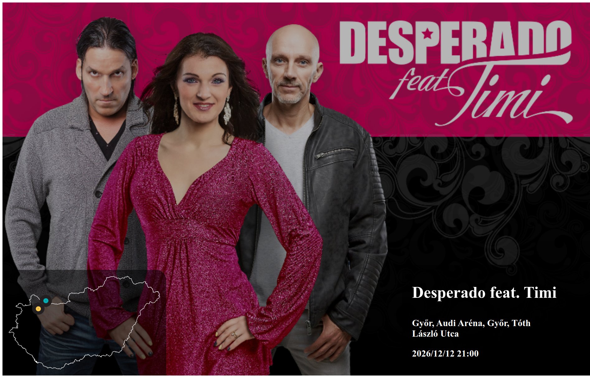 Desperado feat. Timi 2026/12/12 21:00 Audi Aréna, Győr, Tóth László Utca fellépés